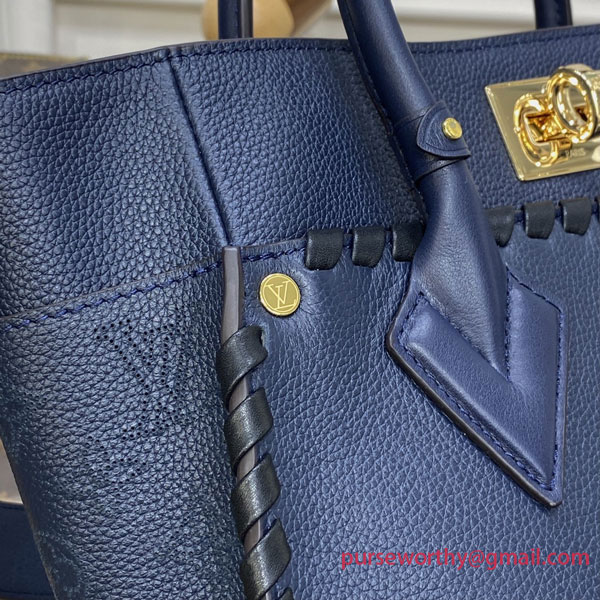 The On My Side MM handbag is made from calf leather, with a perforated Monogram pattern on the sides. Delicate leather braiding, meticulously done by hand, adorns the bag’s front and back, highlighting its structured lines. In addition to the top handles, there’s a wide removable strap, also decorated with braiding.