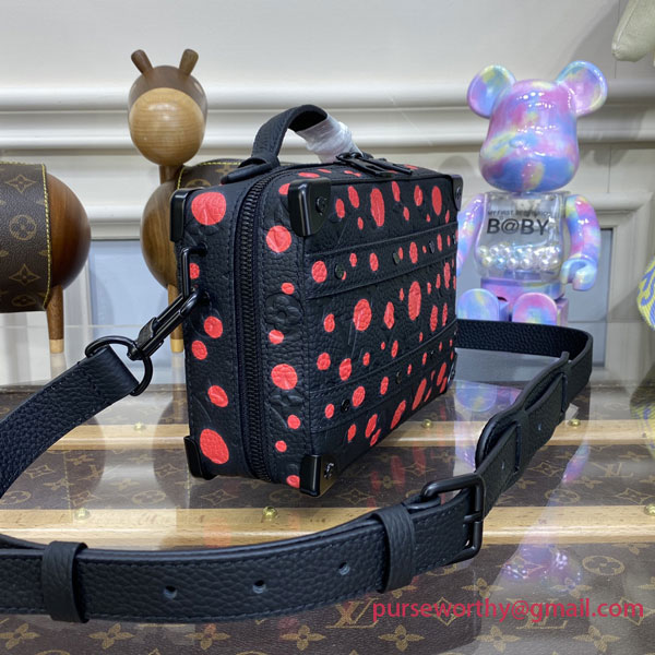 Part of the new Louis Vuitton x Yayoi Kusama collectsion, the LVxYK Handle Soft Trunk is a double celebration, paying tribute to the House’s trunk-making heritage and the vision of a world-class artist. Taurillon cowhide embossed with the iconic Monogram pattern is enlivened with bold red dots, echoing the dazzling dotted motifs that characterize Kusama’s artworks. A distinctive, creative look for an elegant and functional bag.