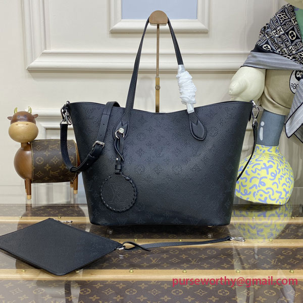The Blossom MM tote bag is made from Mahina calfskin, with the Monogram pattern delicately perforated into the leather. The supple, lightweight calfskin highlights the draped effect of the design and makes it very body-friendly. It’s signed with a leather tag, featuring perforated LV Initials circled in leather braiding. Two long handles allow shoulder carry.