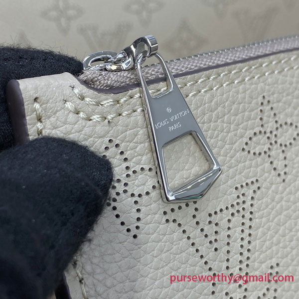 The Blossom MM tote bag is made from Mahina calfskin, with the Monogram pattern delicately perforated into the leather. The supple, lightweight calfskin highlights the draped effect of the design and makes it very body-friendly. It’s signed with a leather tag, featuring perforated LV Initials circled in leather braiding. Two long handles allow shoulder carry.