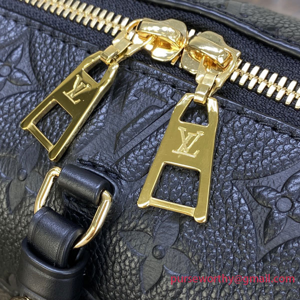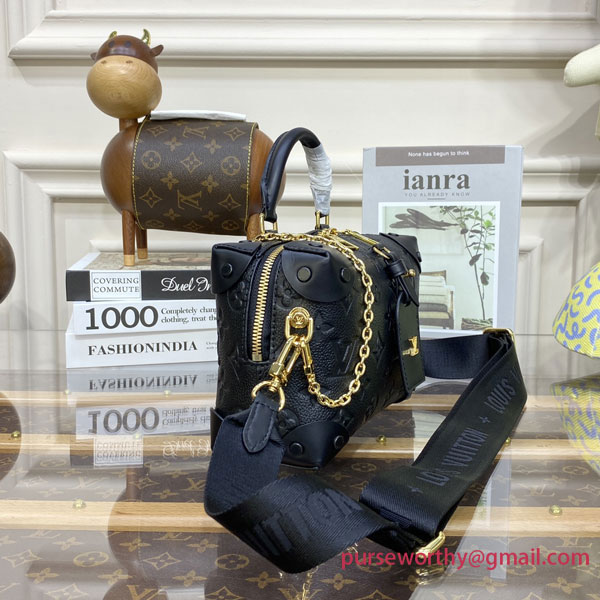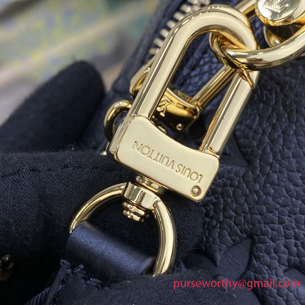 Fashioned from embossed Monogram Empreinte leather, the Petite Malle Souple handbag is a soft-sided version of the now-classic Petite Malle. With its LV luggage tag and riveted leather corners, it is tribute to the House’s trunk making heritage. It has a wide removeable strap, in addition to its top handle, and a practical inside zipped pocket.