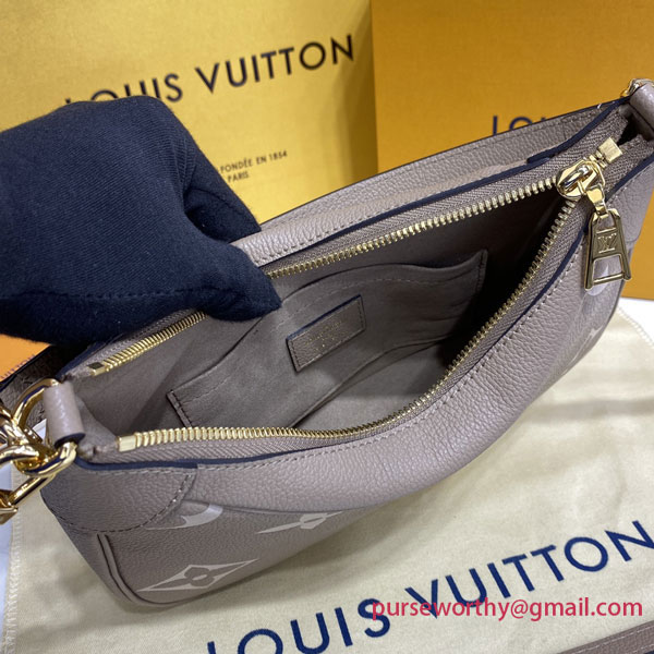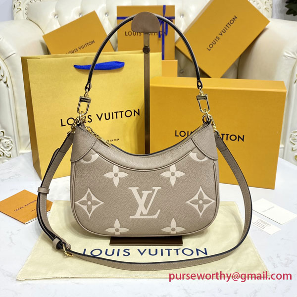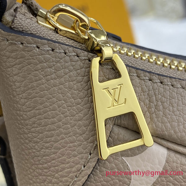 The Bagatelle mini hobo handbag is fashioned from supple, grained Monogram Empreinte leather. The embossed motif is oversized, the better to highlight the delicate color contrast of dove gray and cream. A graceful companion for any ensemble, it offers a host of stylish carry options thanks to the removable handle and detachable, adjustable strap.