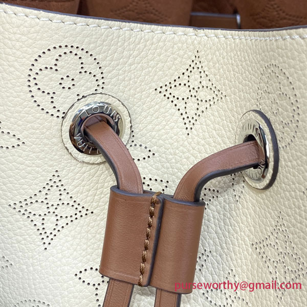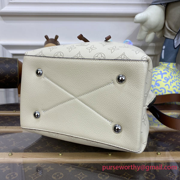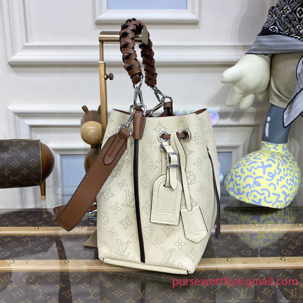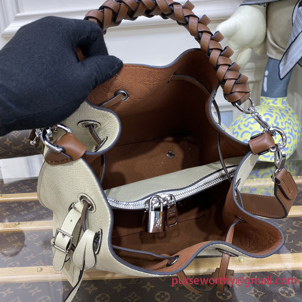 The Muria bucket bag is made from Mahina calf, a perforated leather with a discreet Monogram motif. Supple and sophisticated, it is a pleasure to carry, either by the braided top handle or the long leather strap, which adjusts for short- and long-shoulder or hands-free cross-body wear. Crafted signature details include a name tag and keybell in smooth calfskin.