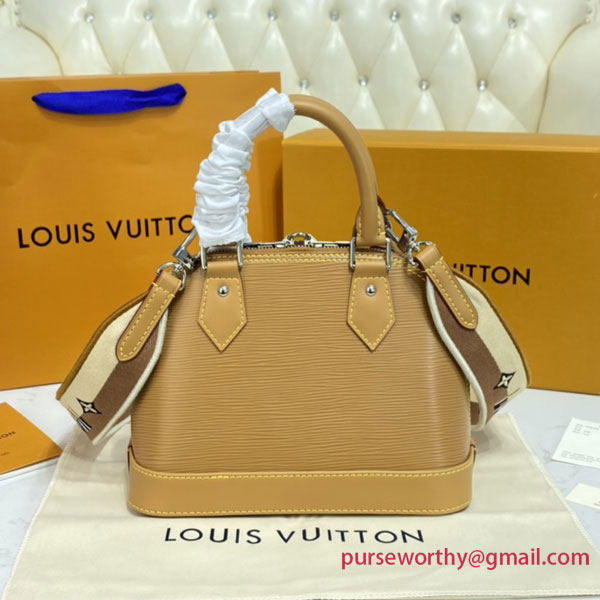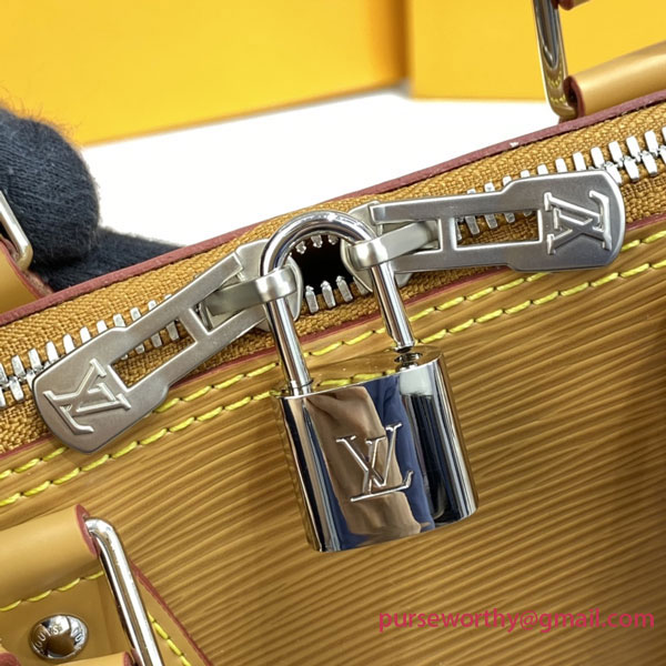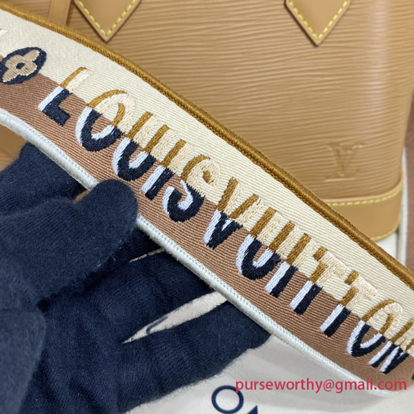One of the House’s most recognizable bags, the adorable Alma BB handbag gets a sporty makeover thanks to a new Jacquard strap. The fashionably wide strap is embroidered with Louis Vuitton on one side and Monogram Blossoms on the other, and features delicate stitching along its edges. Made from colorful Epi leather, this bag will definitely turn heads.