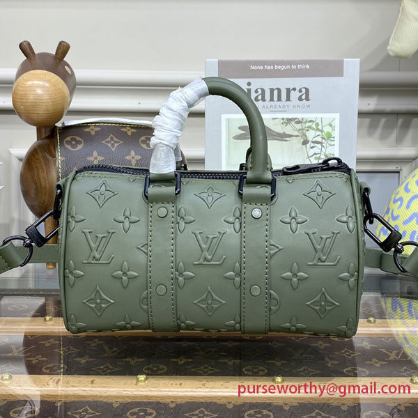 Compact and elegant, the Keepall XS is a scaled-down reinterpretation of Louis Vuitton’s classic Keepall bag. This Monogram Seal version features top-quality cowhide in an on-trend shade of khaki, debossed with the iconic Monogram pattern for a rich tactile effect. With its double handle and adjustable strap, it’s a smart, practical accessory that makes a striking signature statement.