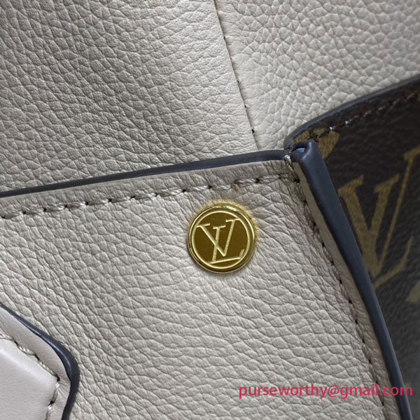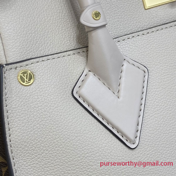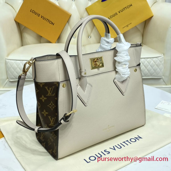 The On My Side MM tote bag is fashioned from an elegant combination of small-grained calf leather and emblematic Monogram canvas. The large outside pockets in contrasting canvas create a bag-in-a-bag look. The roomy interior can easily hold everything needed for a day at the office while the adjustable strap makes for practical cross-body carry.