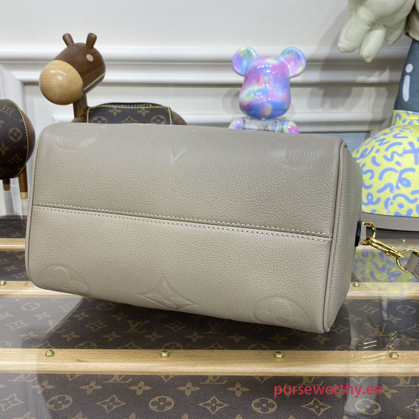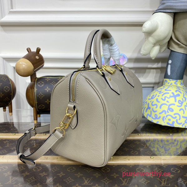 Made from grained Monogram Empreinte leather with the embossed Oversized Monogram pattern, the Speedy Bandoulière 25 handbag radiates discreet style. Its unmistakable lines, Toron handles, engraved padlock, adjustable and detachable strap make this bag instantly recognizable. The generous capacity and body-friendly construction make it eminently practical.