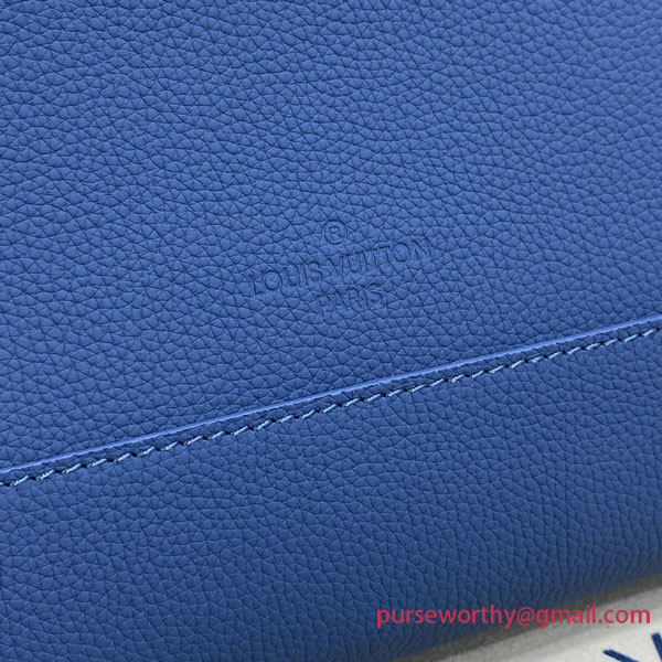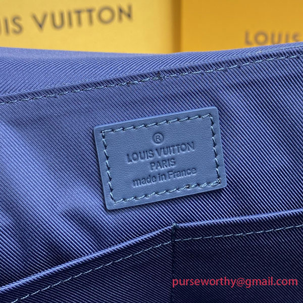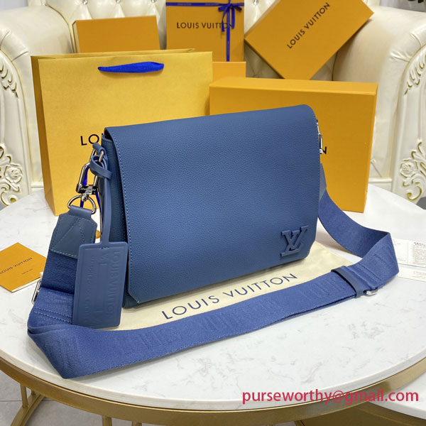 The Takeoff Messenger emanates contemporary chic in blue Aerogram leather. Its soft feel and bias-cut corners were inspired by old-fashioned aerograms, recalling the House’s travel heritage. The “LV” initials in blue metal and a customizable label tag add a low-key signature touch. And its multiple compartments and secure magnetic closure make it an ultra-functional everyday bag.