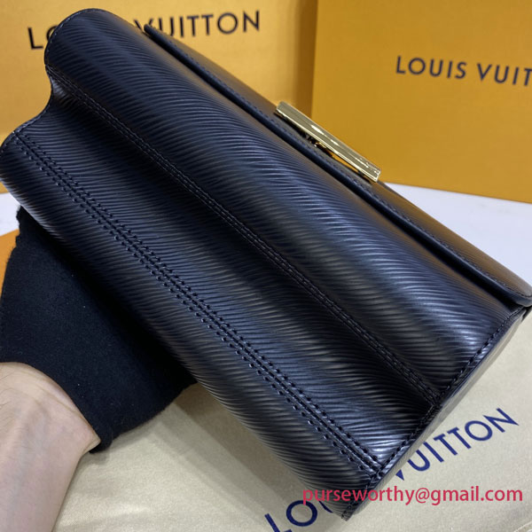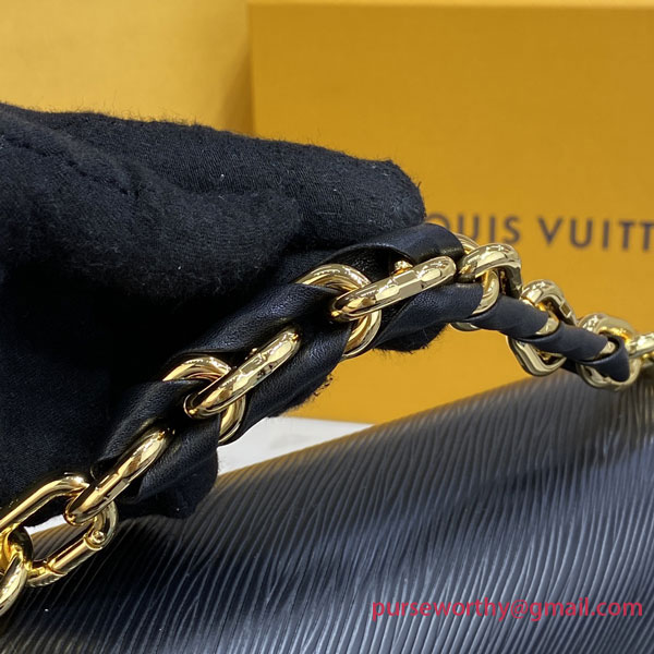 The bicolor metallic pieces, including the LV Twist lock and the chain give to this classic Twist MM a stylish touch. The eye-catching gold and silver-color LV Initials and the on-trend chunky chain bring striking modernity to this piece. The adjustable and removable strap allows multiple carrying options.