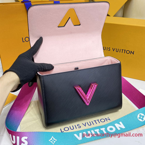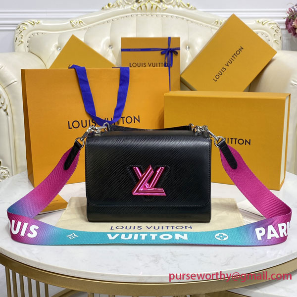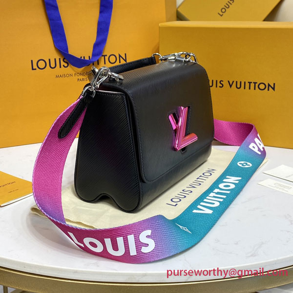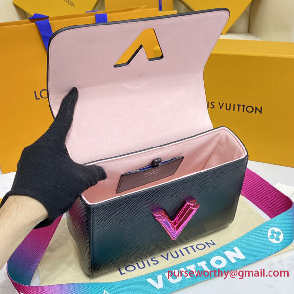 The emblematic Twist MM handbag takes on a playfully contemporary feel with its wide detachable strap in gradient colors, signed "Louis Vuitton". With the emblematic LV Twist lock in a color matching that of the strap, this Twist is nothing if not eye-catching. A removable top handle enables hand carry.