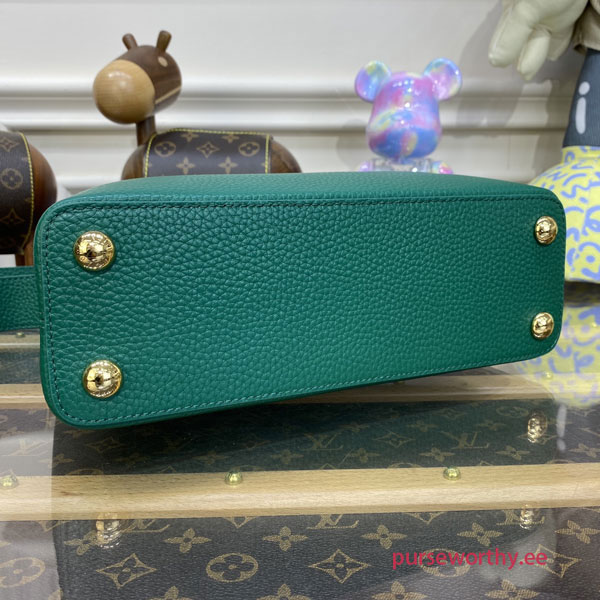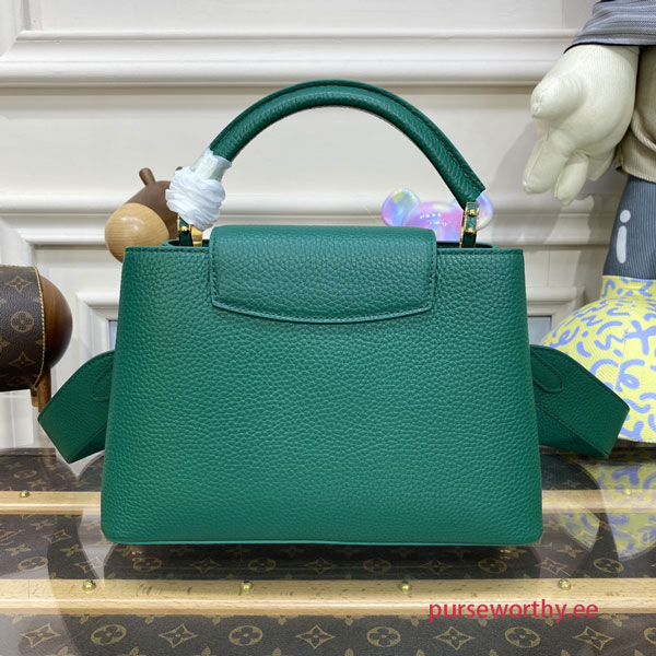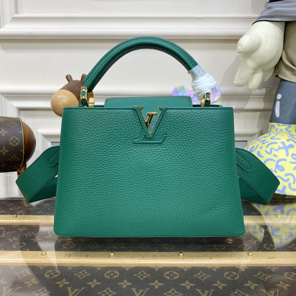 The Capucines BB handbag is made from grained Taurillon leather with tonal details for a sophisticated touch. The BB Capucines size boasts all the iconic details - LV initials, distinctive side rings, and subtle Monogram Flower on the flap.