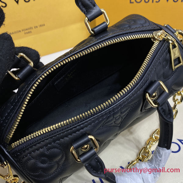 The compact, sporty Papillon BB bag is made from soft, padded calf leather, embroidered with Louis Vuitton’s classic Monogram pattern. It features a removable gold-colour chain in addition to a detachable shoulder strap and rolled leather top handles, enabling multiple ways of carrying the bag.