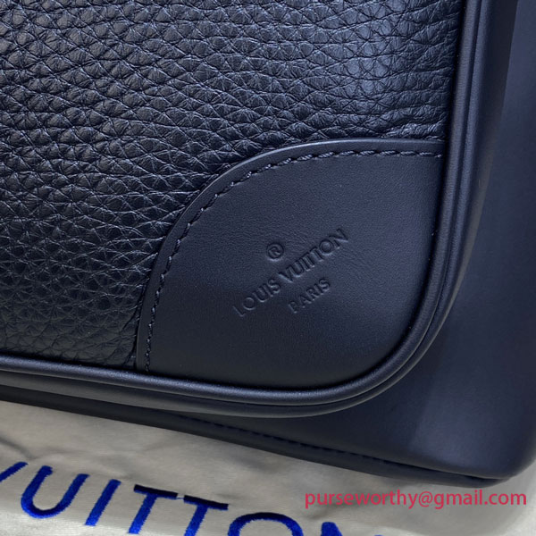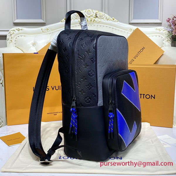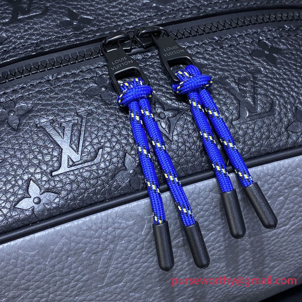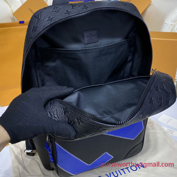 The elegantly boxy lines of this Dean Backpack are perfectly complemented by the bold colorblock treatment and giant LV initials. Made from a mix of plain and Monogram-embossed Taurillon leather, it features a zipped front pocket for quick access to essentials. The oversized LV initials are sewn onto the front pocket with a zigzag stitching.