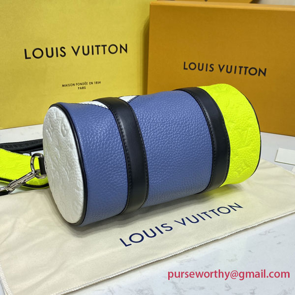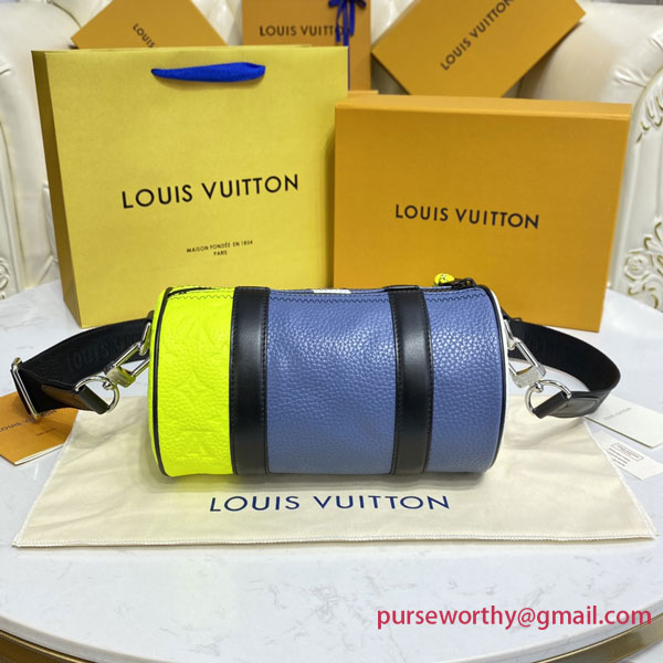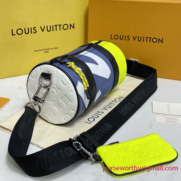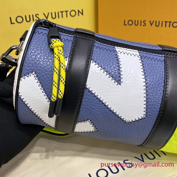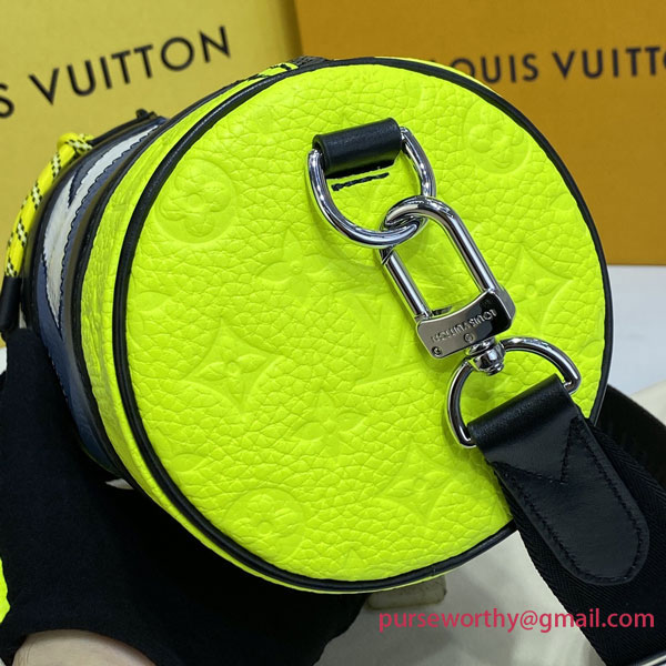 The Polochon is a compact men’s bag with a removable shoulder strap, signed Louis Vuitton. It’s made from a combination of grained and Monogram-embossed Taurillon leather with with big, bold LV initials stitched onto the leather. It includes a coin purse that can be hooked to the strap or slipped into a bag as a compact wallet.`