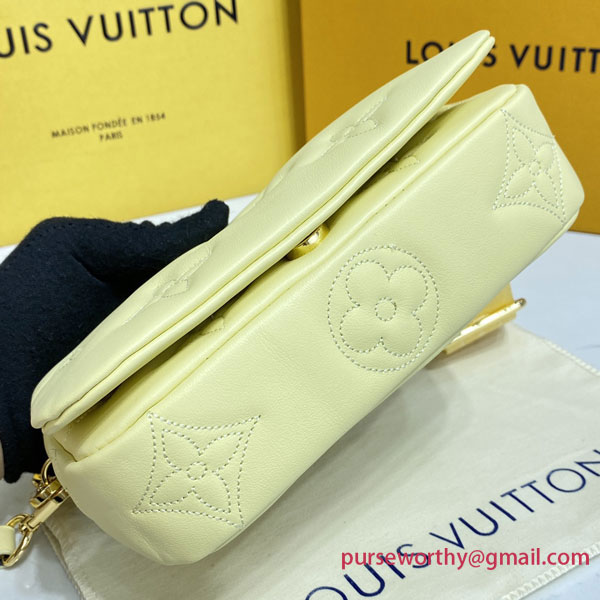 Part of the Bubblegram line, this Wallet on Strap is crafted from soft, padded calfskin, embroidered with the iconic Monogram pattern. This practical, on-trend wallet, which is secured by a magnetic flap, comes with a sporty nylon strap for shoulder or cross-body carry. When the strap is removed, it transforms into a chic, evening-ready clutch.