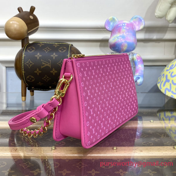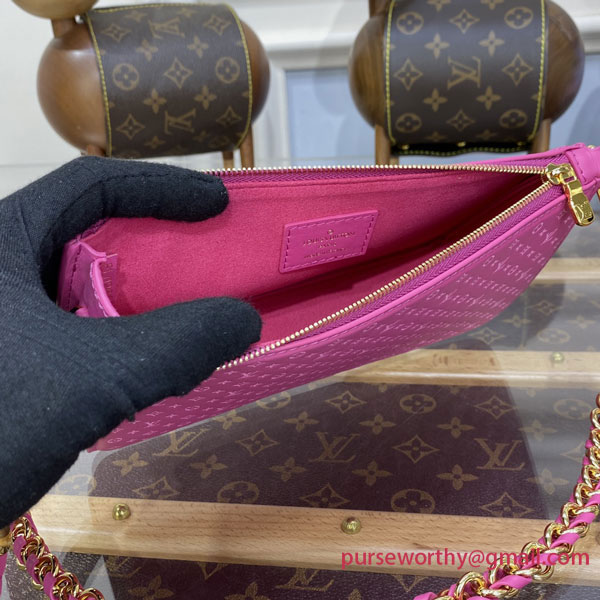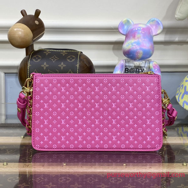 The Lexington pouch is part of the Nanogram leather-goods edition, which was seen at Louis Vuitton's Spring-Summer 2023 fashion show. It comes in soft calfskin embossed with a miniature version of the iconic Monogram pattern, creating a subtle two-tone effect. This neat zipped pouch offers different carry options thanks to its removable, braided chain and removable, adjustable strap.