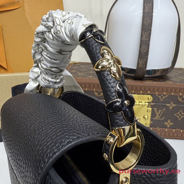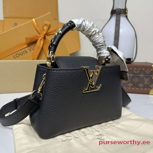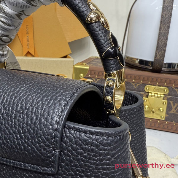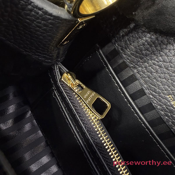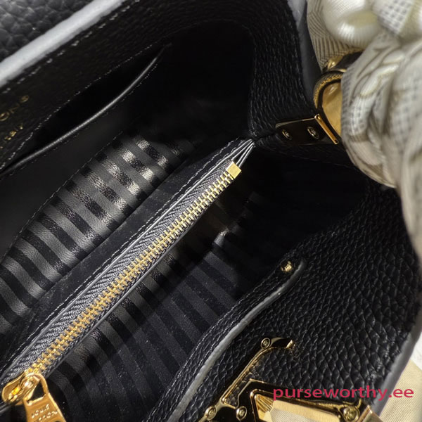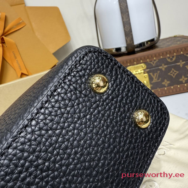 Fits: 6.1-inches smartphone, Capucines compact wallet, keys, lipstick