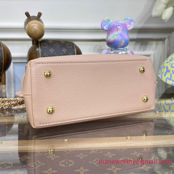 The adorably sized Lockme Ever Mini handbag in grained calf leather is edited this season in fashionable new colorways. Sophisticated lines and a signature LV lock make this model a stylish companion for daily wear or evenings out. The elegant braided chain invites cross-body or over-the-shoulder wear; the top handle is ideal for a feminine hand carry.