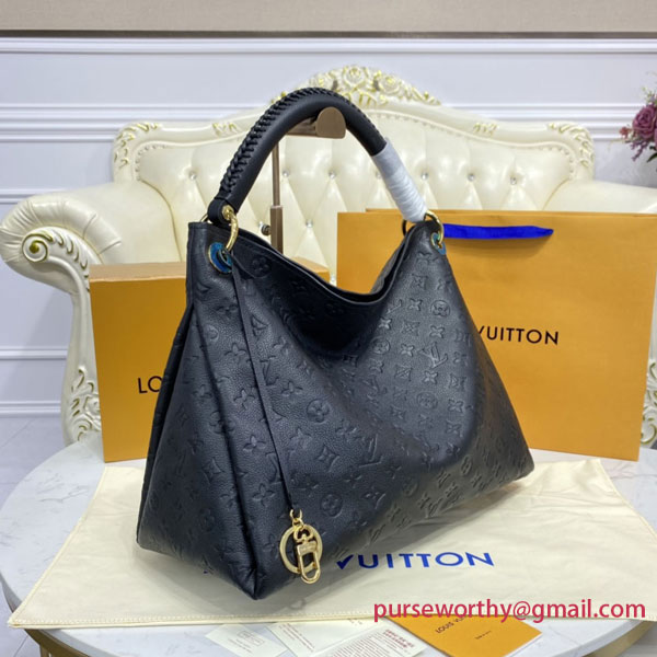 The Artsy MM handbag delights with its refined craftsmanship and functional features. Fashioned from supple Monogram Empreinte embossed leather, this quietly luxurious hobo features a handmade, cross-stitched handle that slips easily over the shoulder. Beautifully detailed with gleaming golden hardware (note the engraved eyelets, D-ring and key holder), it opens to reveal a roomy, well-organized interior. 16.1 x 12.6 x 8.7 inches / 41 x 32 x 22 cm (length x Height x Width) Black Monogram Empreinte embossed supple grained cowhide leather and supple grained cowhide leather Supple grained cowhide-leather trim Textile lining Gold-color hardware Key bell with key ring and hook Large inside zipped pocket 6 inside flat pockets (3 on each side) 4 protective metal bottom studs Handle:Single