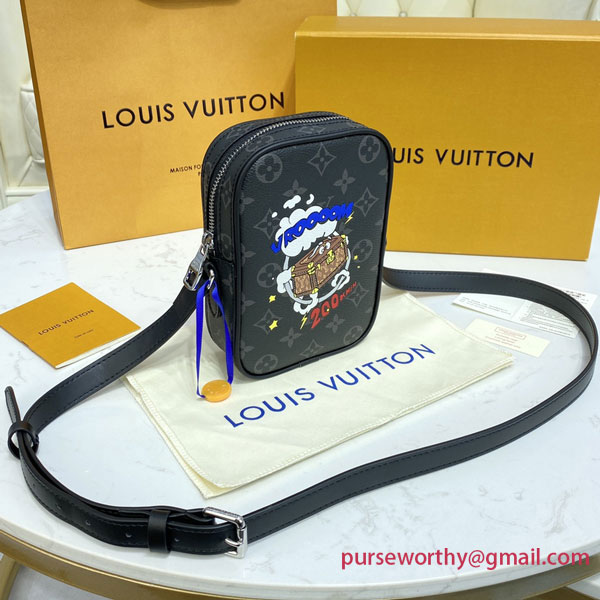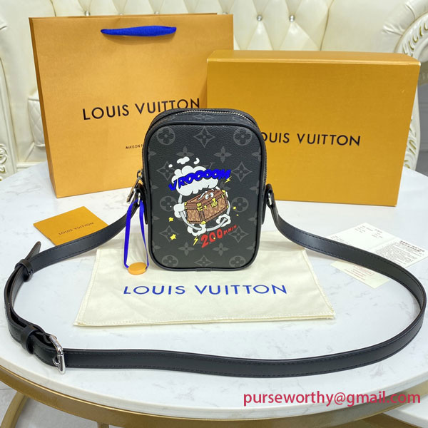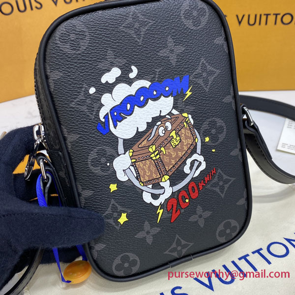 The Danube gets a fun new twist with a comics-inspired print. In a playful nod to Louis Vuitton’s travel heritage, a speed-loving little trunk adds a splash of vibrant color to Monogram Eclipse canvas. Compact and practical, it’s the ideal wearable, with an adjustable strap for comfortable cross-body carry.