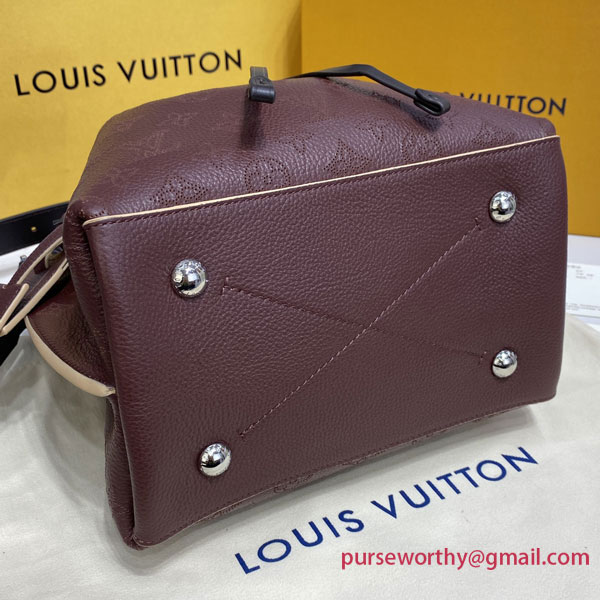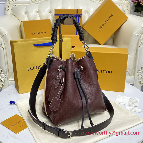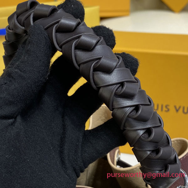 For Fall 2020, the contrasted perforation is offered on the Muria bag in a sophisticated chocolate color, enhanced by a luminous contrasted cachemire tone. Fashioned from Mahina leather, with perforations in a discrete Monogram motif, the Muria bucket bag features an exquisitely braided handle. Its long leather strap adjusts for short- and long-shoulder and cross-body wear. A name tag and key bell in smooth calfskin complete this daily-chic look.