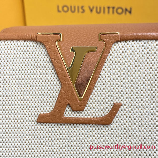 For Spring-Summer 2022 the Maison unveils a new Capucines MM handbag, crafted from elegant natural canvas with iconic Taurillon-leather detailing. The bag may be carried on the shoulder thanks to a beautifully embroidered detachable strap, which is inscribed with the address of Louis Vuitton’s first Paris store at 4, rue des Capucines.