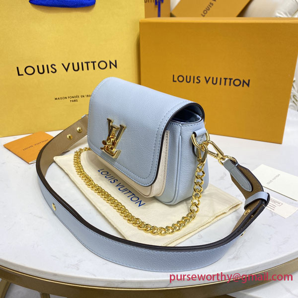 Fashioned from soft grained calf leather, the Lockme Tender cross-body bag comes with a wide removable and adjustable strap in addition to its gold-colored chain. Each side of this versatile strap has a different color. A metallic D-ring on the strap enables to personalize it with a charm.