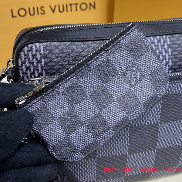This new version of the Trio Messenger combines the versatility of a modular bag with the eye-catching elegance of Damier Graphite 3D canvas in subtle shades of gray. The removable zipped front pouch and coin purse make it a practical carrier for everyday necessities, and the adjustable strap guarantees comfortable cross-body wear.