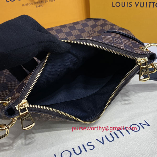 Versatile and solidly on-trend, the Odeon MM bag is made from Damier Ebene canvas and finished with black leather trim, corners and name tag for a timeless feel. The body-friendly design and large capacity make it ideal for an everyday use. The adjustable leather strap allows two carry options: shoulder and cross-body.