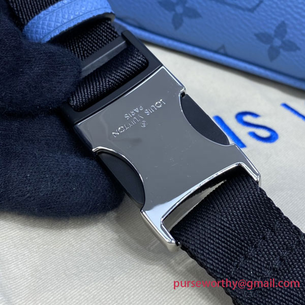 This sleek Outdoor Bumbag hails from the latest Taïgarama lineup of city bags for men. Constructed from a signature mix of tonal canvas and supple Taïga cowhide leather in a stylish Denim blue hue, this adjustable belt bag keeps belongings secure yet readily accessible. The strap adapts easily for trendy front or back cross-body wear.