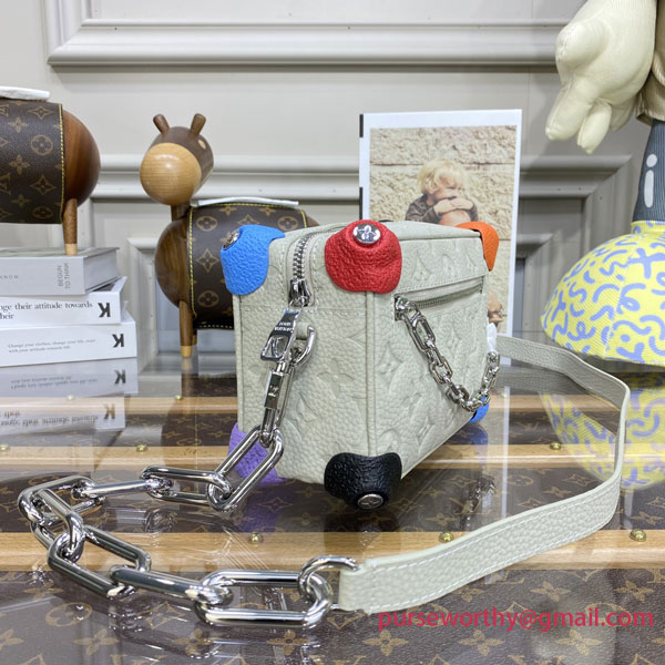 This update of the Mini Soft Trunk captures the spirit of sports and youthful energy with designer Virgil Abloh’s “Climbings” theme for Fall-Winter 2022. The House’s emblematic Monogram pattern is embossed on chalk white Taurillon leather dotted with stylized climbings holds in cool colors. A lighthearted new take on a stylish and practical bag.