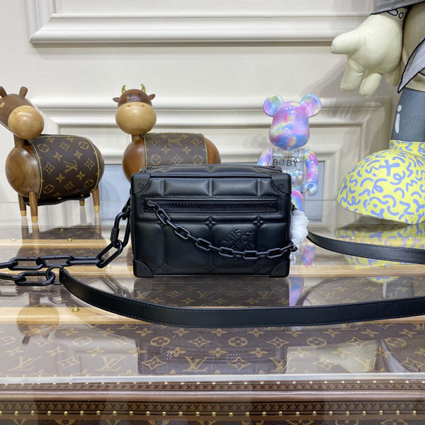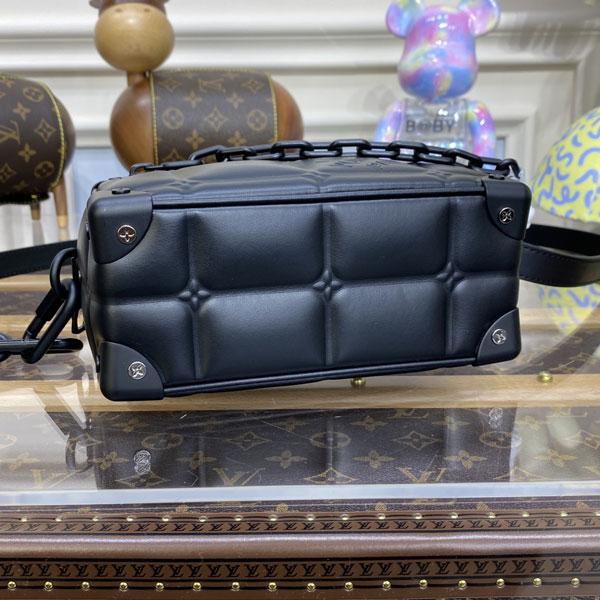 The iconic Mini Soft Trunk gets a creative update with designer Virgil Abloh’s Puffy Damier look. Louis Vuitton’s historic checkerboard pattern is reinterpreted in supple black calf leather puffed up using a sophisticated high-frequency technique and highlighted with Monogram flowers. Compact but large enough to hold all the everyday necessities, it’s a practical and stylish everyday bag.