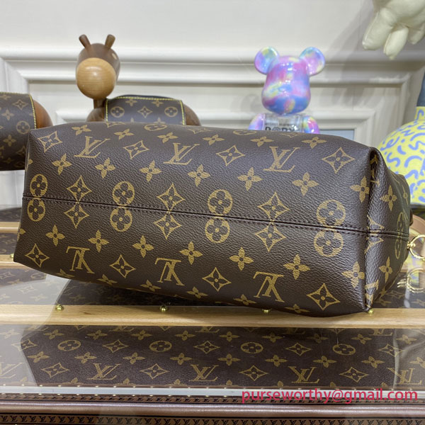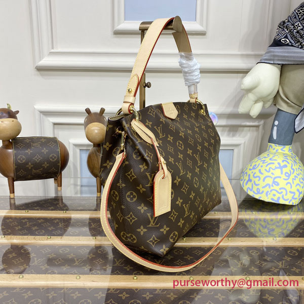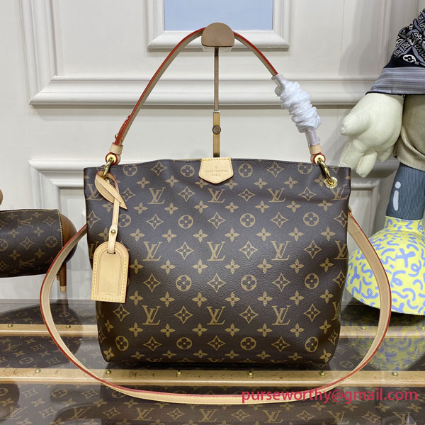 The Graceful PM hobo in classic Monogram canvas is a lightweight, roomy bag to carry every day. Natural cowhide leather detailing and golden hardware add a refined touch. The body-friendly design combines with a supple, flat handle for stylish and comfortable over-the-shoulder wear. The magnetic closure and zipped inside pocket keep belongings secure.