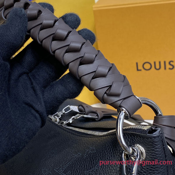 The Beaubourg Hobo MM bag is made from Mahina calf leather perforated with the Monogram pattern. It boasts a stylishly braided-leather top handle, with hand-painted edge-dyeing along the braids. The leather zip pulls and large LV charm sign the bag. A detachable, wide leather strap means that this supple bag feels comfortable against the body.