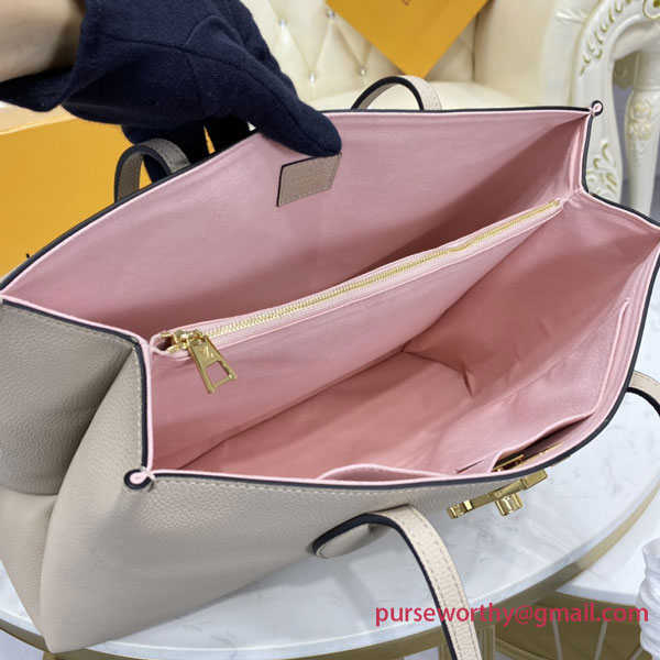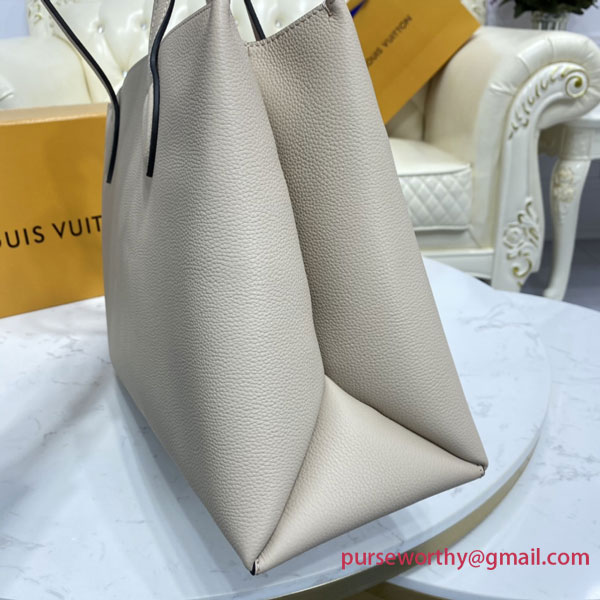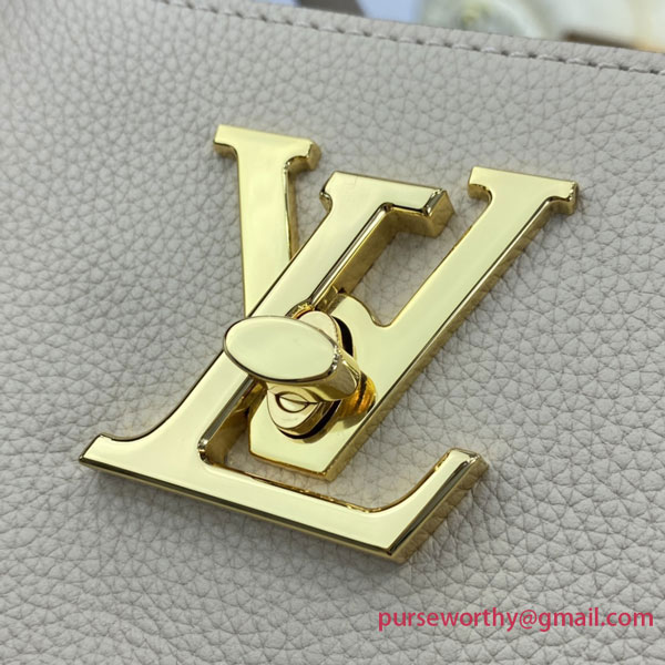 Comfortable to carry thanks to its two long leather straps, the Lockme Shopper handbag in supple calf leather is instantly recognizable by its iconic LV turn lock, which secures the closure. Rounded and folded gussets give the bag a feminine feel and make it roomy enough to hold everyday essentials, including A4 files.