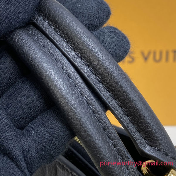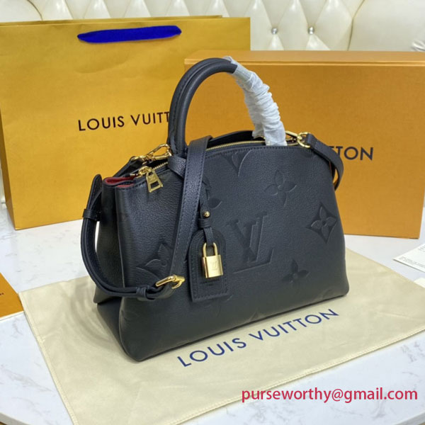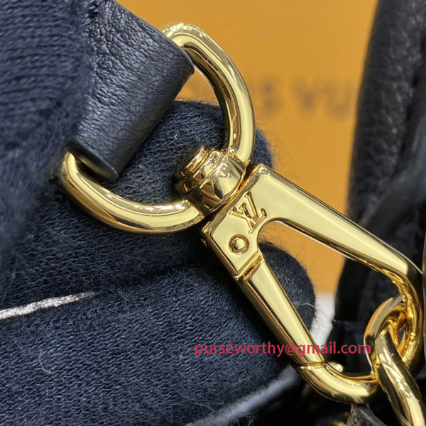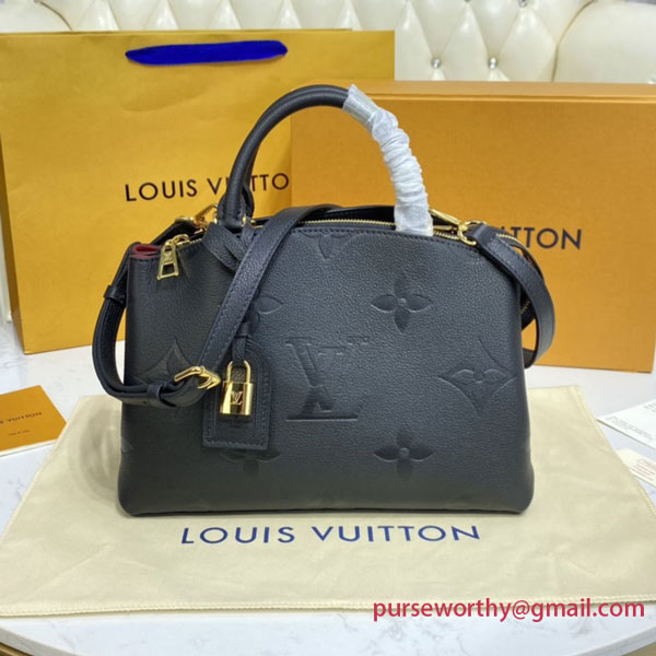 The sophisticated Petit Palais is a smaller handbag made from soft, grained leather with an embossed oversized Monogram pattern. The leather name tag and gold-color padlock bring a touch of elegance and evoke the House’s travel roots. There are two top handles for hand carry; the removable and adjustable strap provides comfortable shoulder wear.