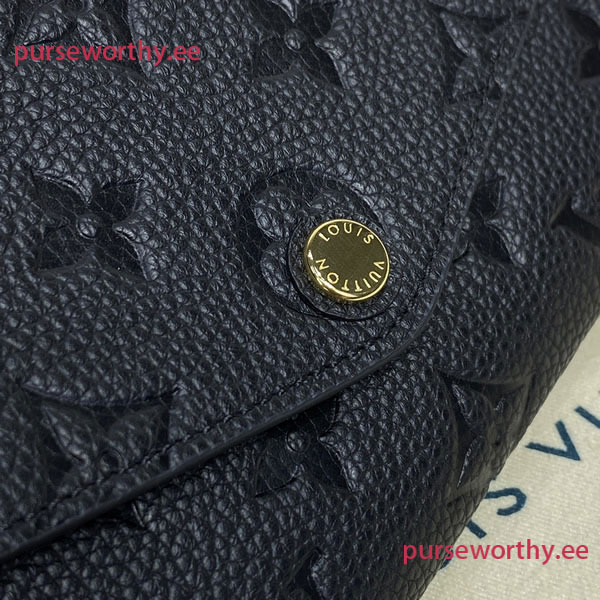 The Sarah wallet is crafted from Monogram Empreinte leather, embossed with Louis Vuitton's iconic Monogram pattern. The wallet's envelope-style flap opens to reveal a variety of practical features, including multiple credit-card slots and a zipped coin pocket.