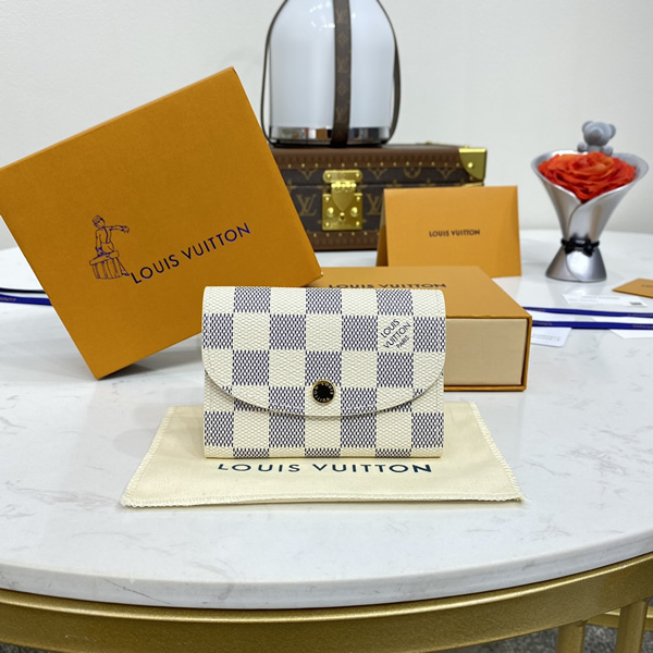 With its neat proportions and softly rounded flap, the Rosalie coin purse in Damier Azur canvas is a feminine design. The fresh canvas is complemented by a colorful grained cowhide leather lining. Inside, it offers two credit card slots and a zipped pocket for coins.