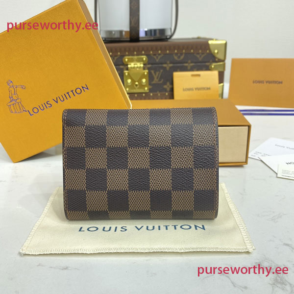 The Victorine wallet in Damier Ebene canvas is a compact, envelope-style design which opens out to reveal a range of practical features. It includes space for bills and cards, and a zipped coin pocket on the side.