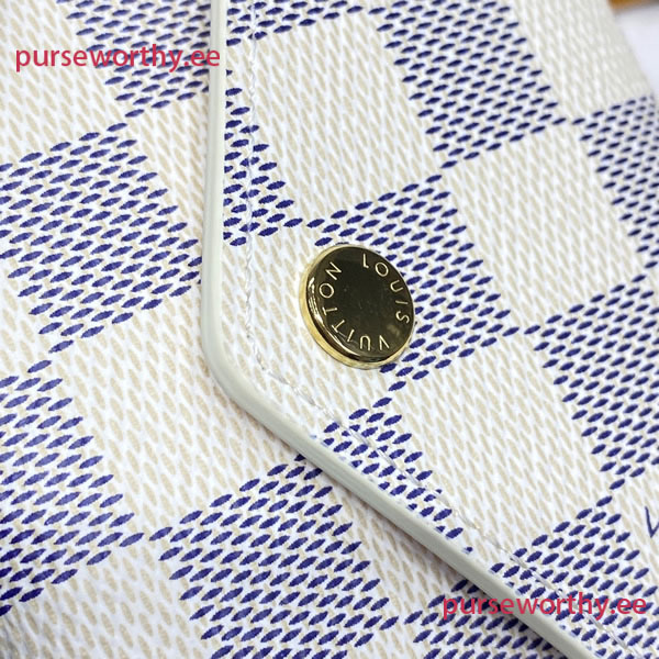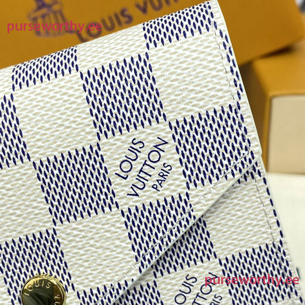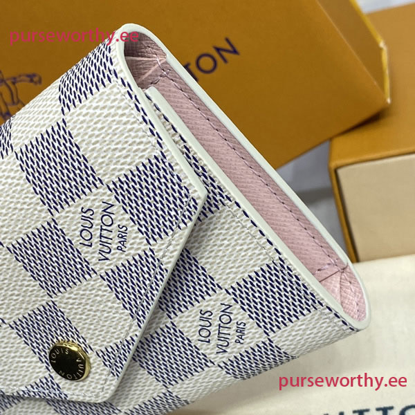 The compact Victorine wallet in Damier Azur canvas combines femininity and functionality. It opens out to reveal many practical features, including card slots and pockets for bills and coins.