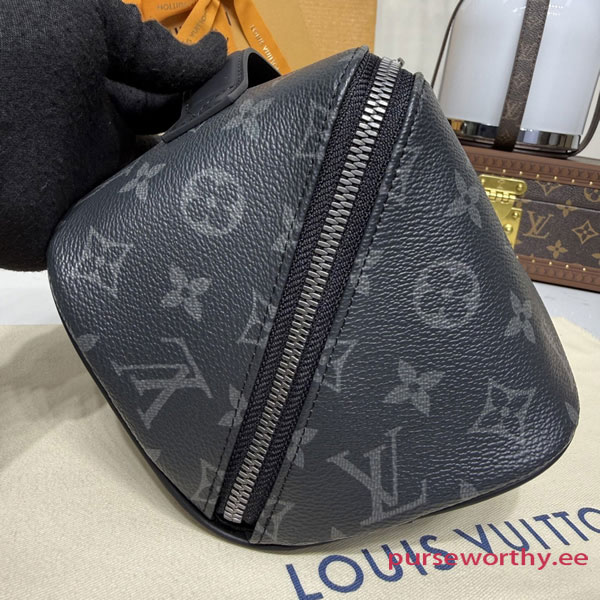 The Toiletry Bag 2 Compartments travel pouch is made from Monogram Eclipse coated canvas. Thanks to its extra-large opening, and inner gussets, the pouch offers two distinct inside compartments, ideal for carrying grooming products. Very functional, it features double-zip closure and a washable textile lining. The top handle makes it easy to carry.