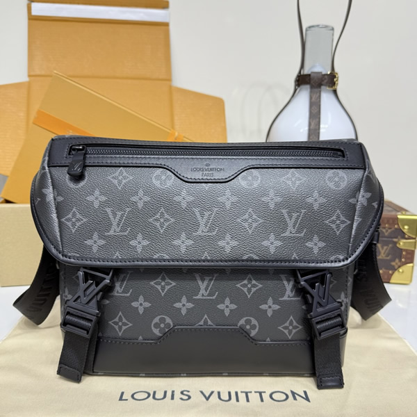 The Messenger Voyager PM is a comfortable-to-carry bag in Monogram Eclipse canvas. This small messenger bag can fit a tablet computer, charger, and other daily essentials, and closes with two fast-release buckles in the shape of the House’s LV Initials. The strap adjusts for shoulder or cross-body wear.