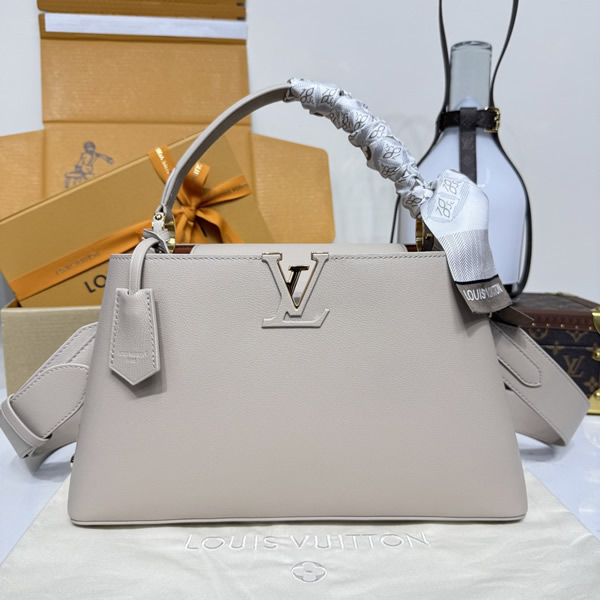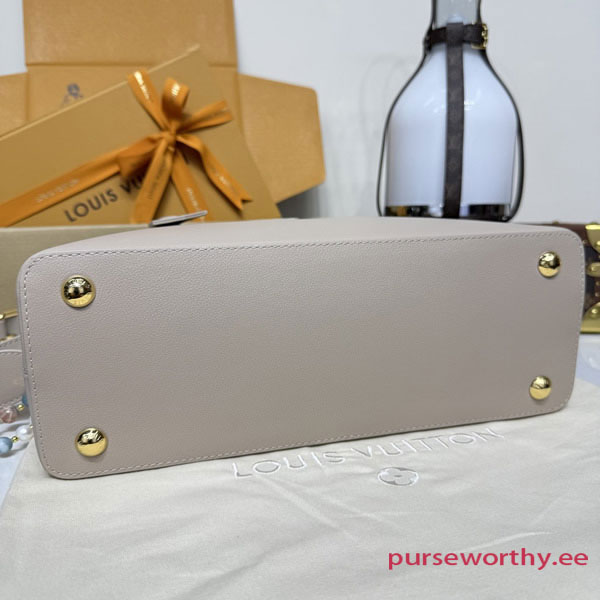 The iconic Capucines Souple handbag is revisited in a practical MM size, making it generously sized to store essentials, while remaining easy to carry and transport. Crafted from supple grained calfskin, it is adorned with a signature keybell and comes with a unique charm made of natural stones. The double-carry style is roomy enough to store two phones, as well as other daily essentials. Carry it by hand or attach the shoulder strap to go hands-free.