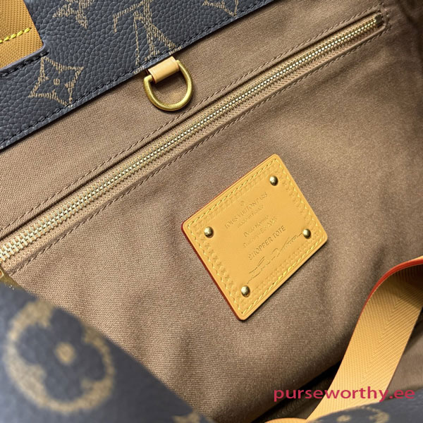 The elegant Shopper Tote MM is fashioned from supple calfskin leather that appears to be Monogram canvas. Pharrell Williams playful design creates the illusion of aged Monogram canvas through a special treatment of the leather. Versatile, it has two top handles and a removable shoulder strap.