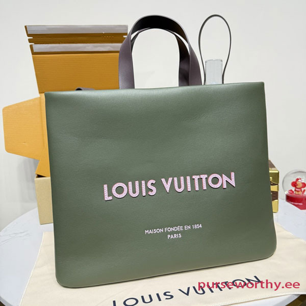 Part of the LV Packaging line, which elevates everyday objects into luxurious pieces, this Shopper Tote reimagines the House’s shopping bag in cowhide leather. Adorned with an embroidered signature on the front and back, this carry-all features tone-on-tone lining and numerous interior pockets. A removable shoulder strap provides carry options.