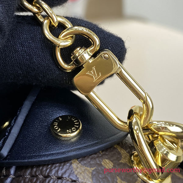 The distinctive Petite Malle Souple is a soft handbag steeped in the House history. The Monogram canvas, riveted leather corners, and leather name tag all evoke Louis Vuitton’s legacy as a trunk maker. A gold-color nautical chain and wide removable strap, with Louis Vuitton Malletier embroidered on it, bring up-to-the-minute style.