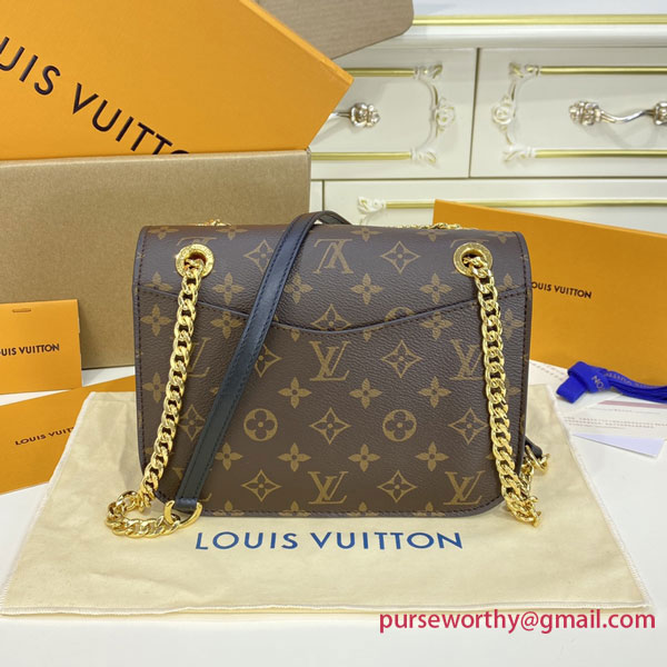 The compact Passy handbag in Monogram canvas with a sliding chain is the quintessence of casual chic. A functional day-to-evening bag, it has front and back outside pockets for quick access to essentials as well as two inside pockets. It closes with a magnetic LV lock in black resin with a gold-color outline.