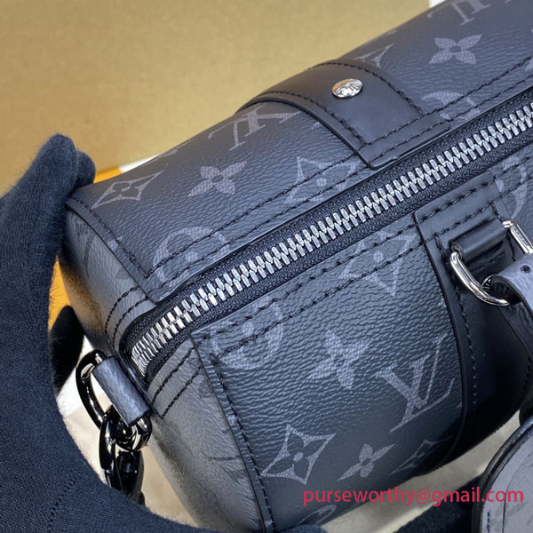 Louis Vuitton’s classic Keepall is scaled down to become a stylish and practical city bag in Monogram Eclipse canvas. Echoing Kim Jones’s “Upside Down” collectsion from 2018, the iconic Monogram pattern is inverted on the side panels for a playful touch. Easy to wear with its removable signature strap, it’s the elegant way to carry everyday essentials.
