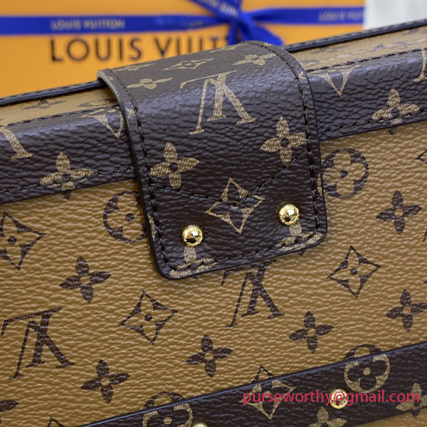 Every detail of the Petite Malle handbag is inspired by the history of Louis Vuitton trunks: the shape, the Monogram Reverse canvas, the gold-tone lock and fittings – even the sheepskin lining reprises a classic House motif. Impeccably crafted, this fashionable “little trunk” travels easily from day to evening. It can be carried as a clutch or attached to the adjustable strap for cross-body wear.