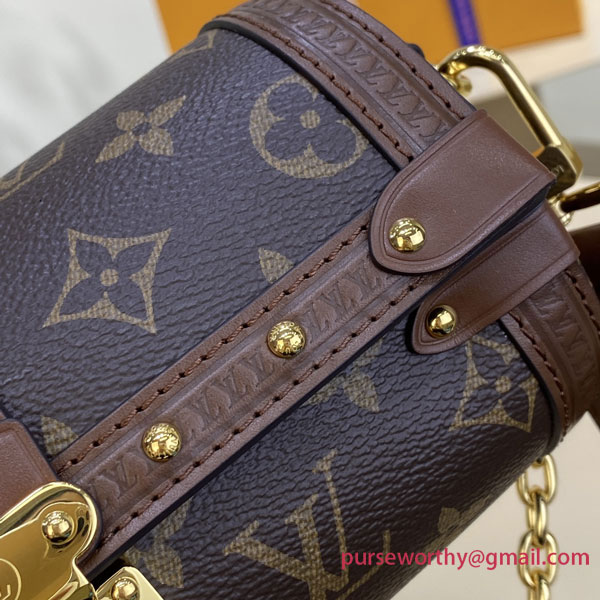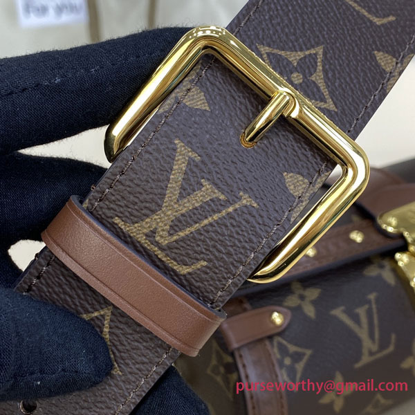 Nicolas Ghesquière introduces a new shape – both feminine and casual – inspired by Louis Vuitton’s archives: the Papillon Trunk handbag. The iconic Papillon duffle bag is transformed into a trendy semi-rigid baguette. The S-Lock, LV-embossed trunk trimmings and studs pay homage to the House’s trunkmaking beginnings.